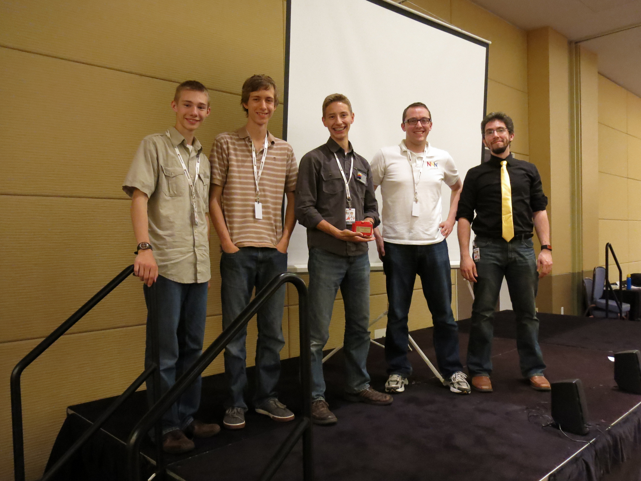 The winners of the 2013 Brickworld Film Festival pose with Pickett and Pagano.